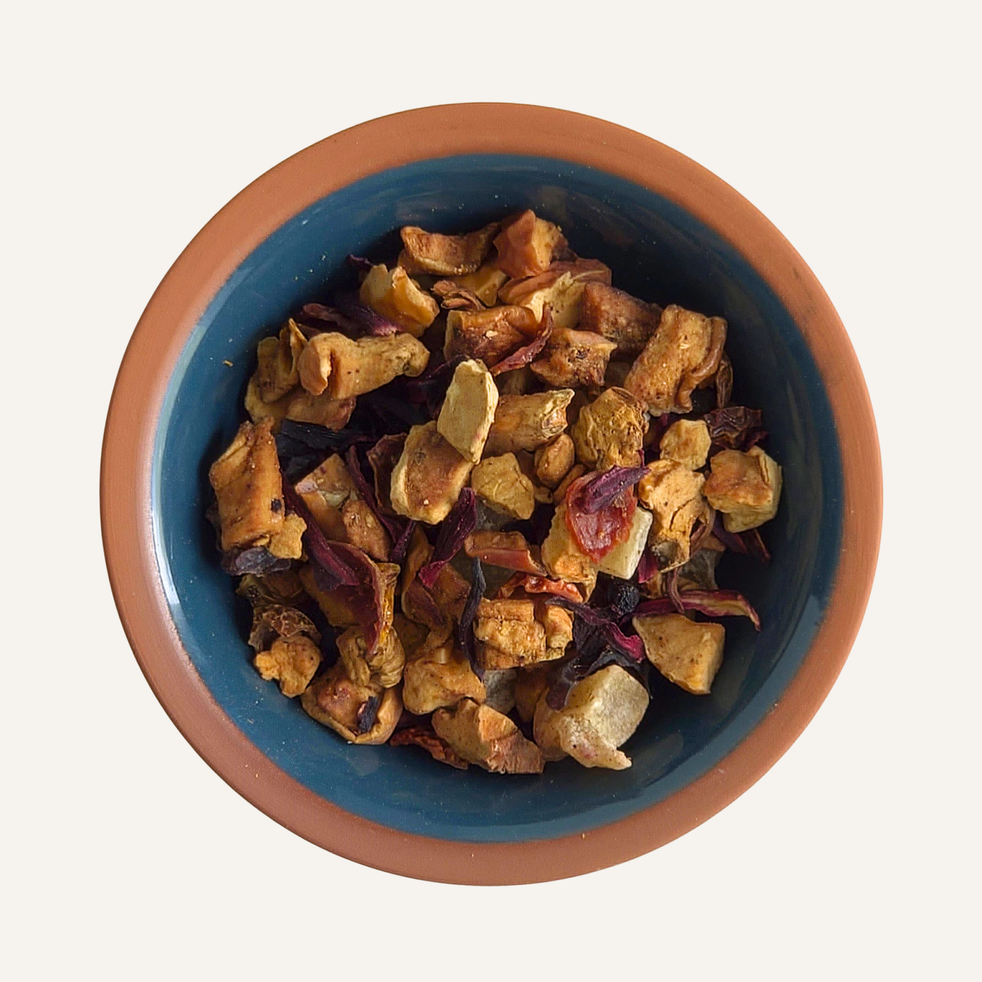 A vibrant herbal blend bursting with luscious mango, bright hibiscus, and sun-kissed fruit. Refreshing and radiant — especially over ice.